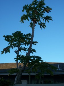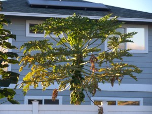 My guess is that tomatoes are the garden vegetable of choice on the mainland. Here in Kihei, it looks like papaya!